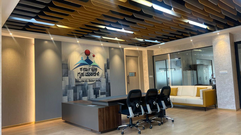 A contemporary workspace designed with bold ceiling accents, glass partitions and warm wooden flooring. Vibrant lounge areas, green wall features, and integrated lighting create an inviting, collaborative and professional environment. Thoughtful details in furniture, textures and branding bring a dynamic identity to the interiors.